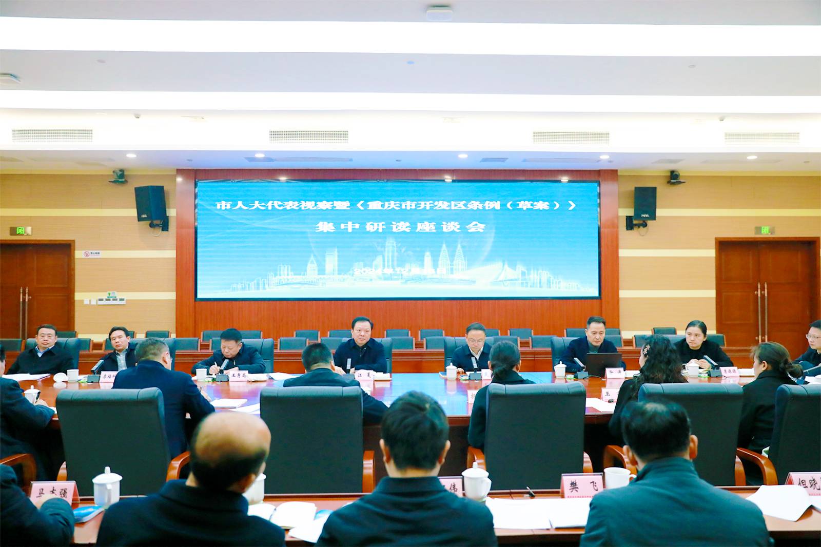 2024年12月18日,在长市人大代表集中研读《重庆市开发区条例(草案)》。