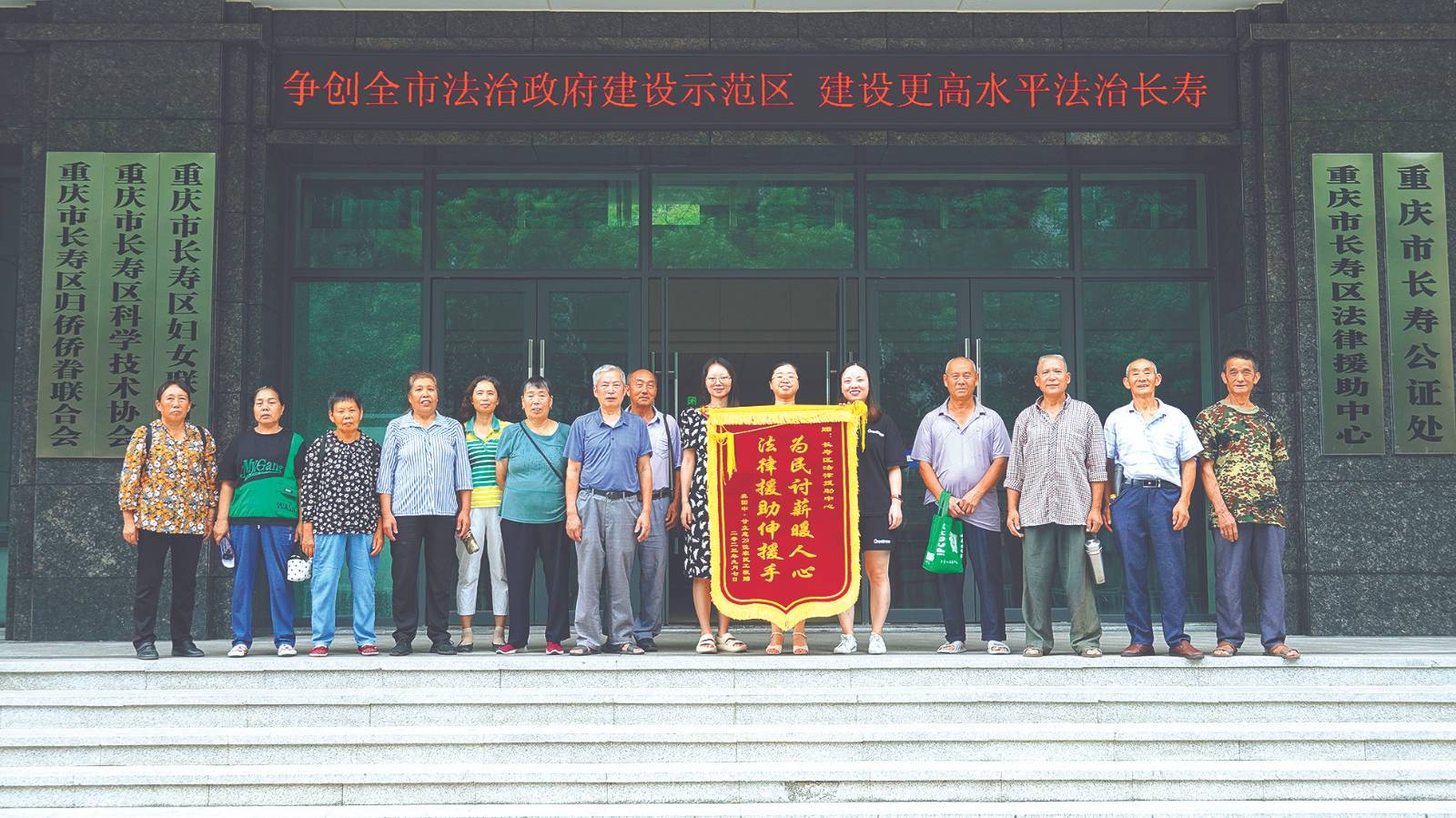 受援人王某某等向长寿区法律援助中心及援助律师赠送锦旗。