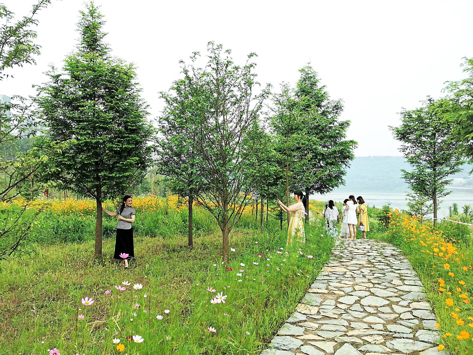 巴南区花溪河湿地公园吸引不少市民前来游玩