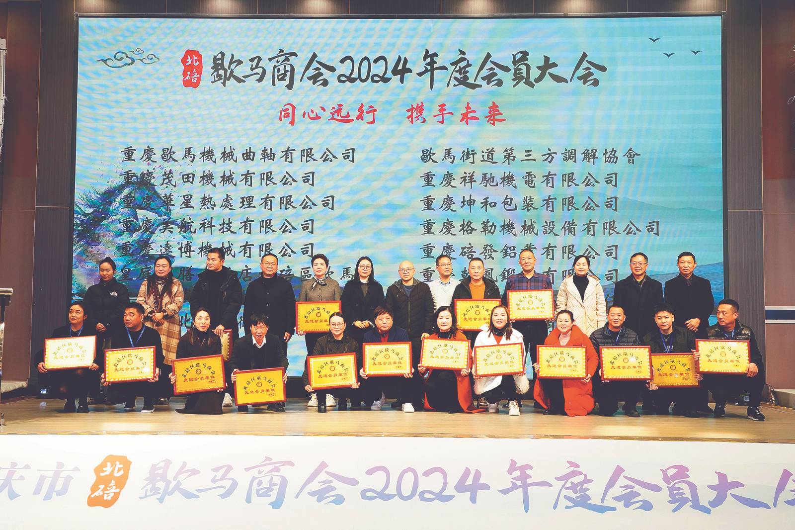歇马商会举办2024年度会员大会,为先进会员单位颁奖。