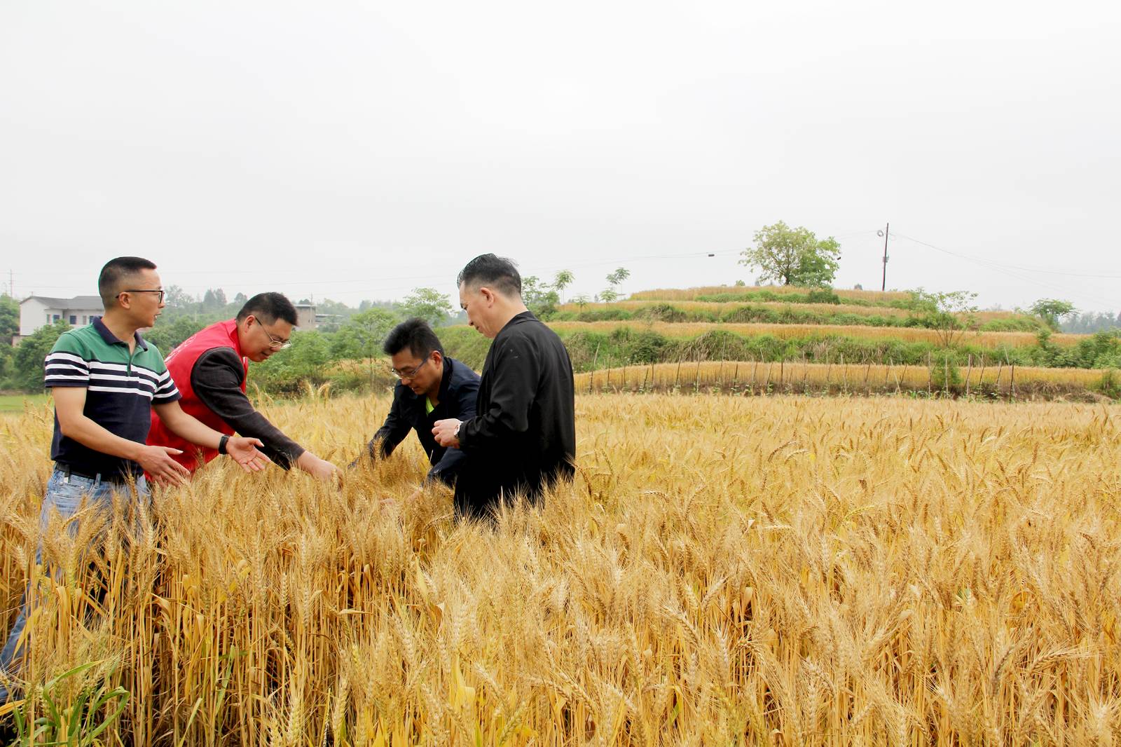 大佛村民情联络点的代表们在四社瓦角湾查看复垦地的小麦长势情况。